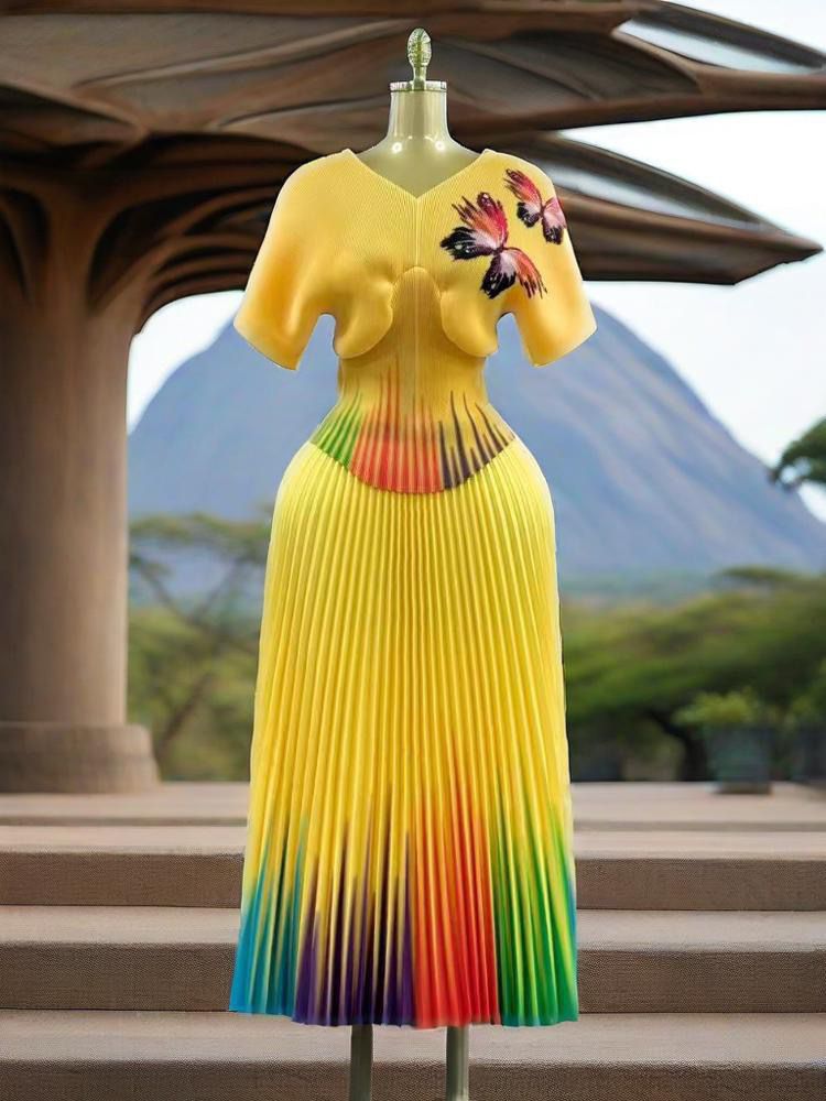 New Women Elegant Skirt with Printed Design Batwing Sleeves Top and Pleated Skirt for Causal and Different Occasions – Set Womenswear Clothes Outfit Elegance